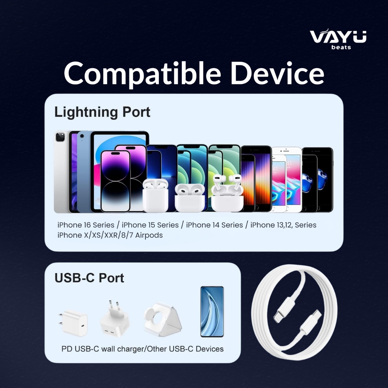Experience blazing-fast charging with the C-L 27W USB-C to Lightning Fast Charging Cable, designed for speed, durability, and compatibility. Engineered with Power Delivery (PD) technology, this original charging cable delivers up to 27W of output, ensuring your iPhone or iPad powers up quickly and efficiently. Compatible with a wide range of Apple devices, including iPhone 8, X, 11, 12, 13, 14 series, and iPads, this cable supports 20W+ fast charging when paired with a USB-C PD charger. Whether you’re syncing data, charging overnight, or powering up in a rush, this cable gets the job done — faster. Built to last, the cable features reinforced joints and premium materials to withstand daily use, bending, and unplugging. The compact design makes it ideal for use at home, in the office, or while traveling. Stay powered and productive with this high-speed, reliable, and safe charging solution that meets Apple’s performance standards.